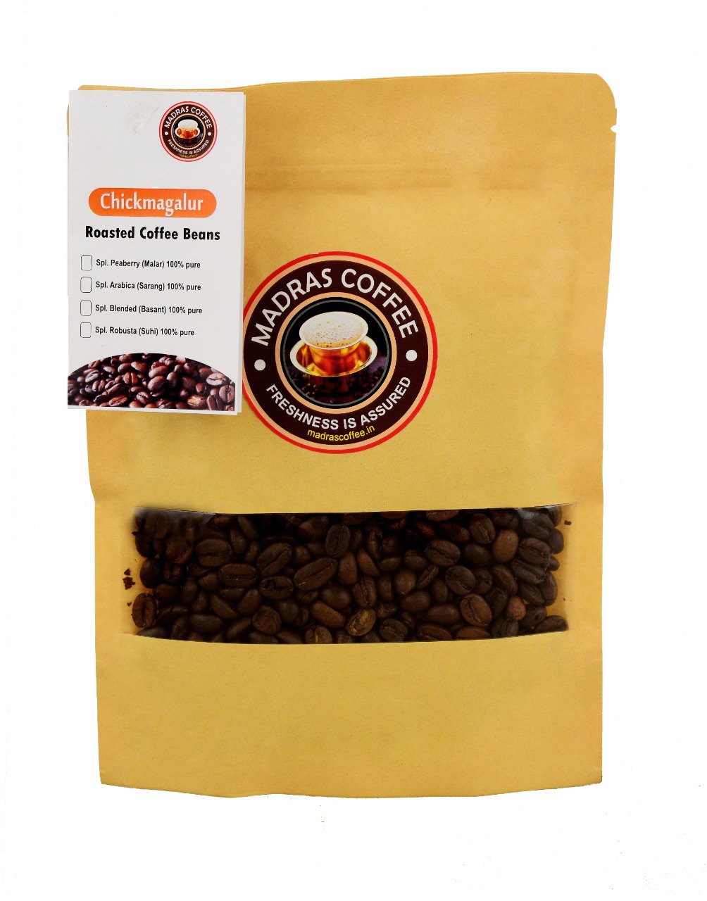 This product has Freshly Roasted Coffee Beans, just grind the required quantity from this pack for your Coffee Cup. The Freshness and Aroma stay longer in the Roasted Bean Form.